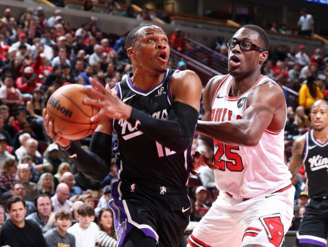 但是,有一個人沒擺爛:威少。常規(guī)賽開打前,威少才以1年360萬無保障底薪的合同簽約國王,國王隨時可以裁掉他。常規(guī)賽開打后,威少20場全勤(國王隊內(nèi)全勤的就三人:威少+德羅贊+尤班克斯),場均14.4分7.2籃板6.8助攻,兩項命中率44%+39%。值得一提的是,威少的三分球產(chǎn)量(場均2.1記三分球)和效率均值,是國王隊內(nèi)最高的。美媒特意統(tǒng)計了一下,本賽季當威少首發(fā)時,場均可以貢獻15.6分8.4籃板7.3助攻,三分球命中率42%!此外威少本賽季已經(jīng)有過三次三雙,打勇士砍下23分16籃板10助攻。