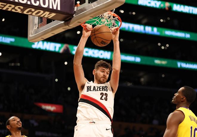 下半場比賽開始,易邊再戰(zhàn),卡馬拉面筐閃電突破上籃得手,揭開第三節(jié)比賽序幕;范德比爾特禁區(qū)吃餅,震蕩灌籃點燃全場,克林根禁區(qū)內高舉高打回應一球,阿夫迪亞三分線外手起刀落,洞穿籃心。盡管湖人里夫斯又開始發(fā)力,第三節(jié)三投全中,獨得9分;但湖人其他得分點實在太少,再加上開拓者這邊三分手感回暖,阿夫迪亞和格蘭特三分連著投進,湖人的劣勢反而越來越大;三節(jié)比賽打完,開拓者89-77領先湖人18分。