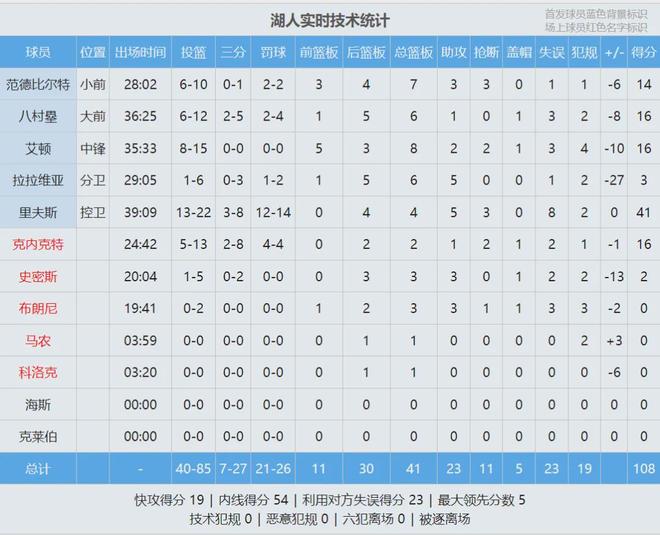 湖人今天只有10名球員可以出戰(zhàn),布朗尼進入輪換名單。昨天里夫斯爆砍51分11板9助2斷,看看他今天能否延續(xù)火熱手感。本賽季前三場比賽,湖人全隊的罰球總數(shù)達到106個,一共凈勝對手38個罰球,兩項數(shù)據(jù)均是聯(lián)盟第一。