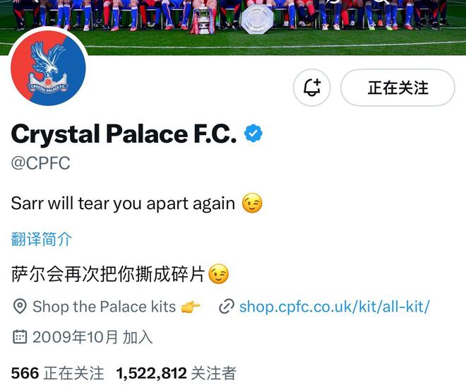 雷速體育10月31日訊 在聯(lián)賽杯3-0擊敗利物浦后,水晶宮俱樂部官方社媒修改簡(jiǎn)介,再次調(diào)侃了對(duì)手。
