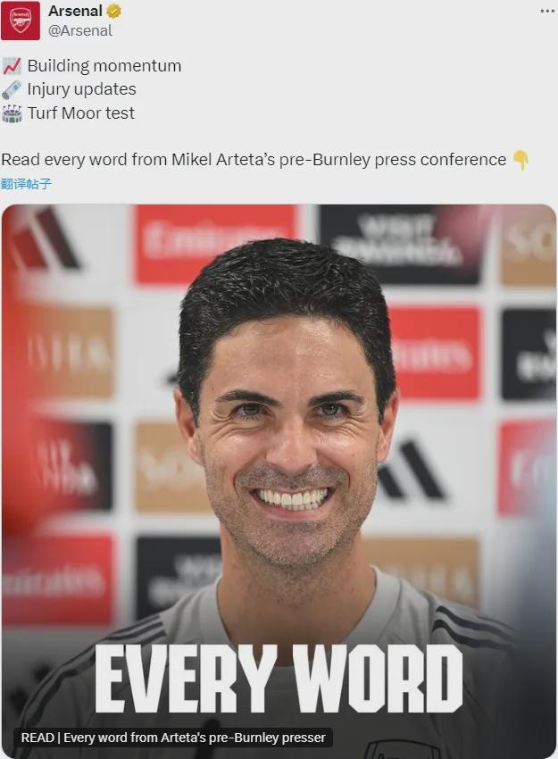 阿爾特塔在賽前新聞發(fā)布會上談到了球隊的傷病問題,咱們簡單看看阿森納主帥的發(fā)言。